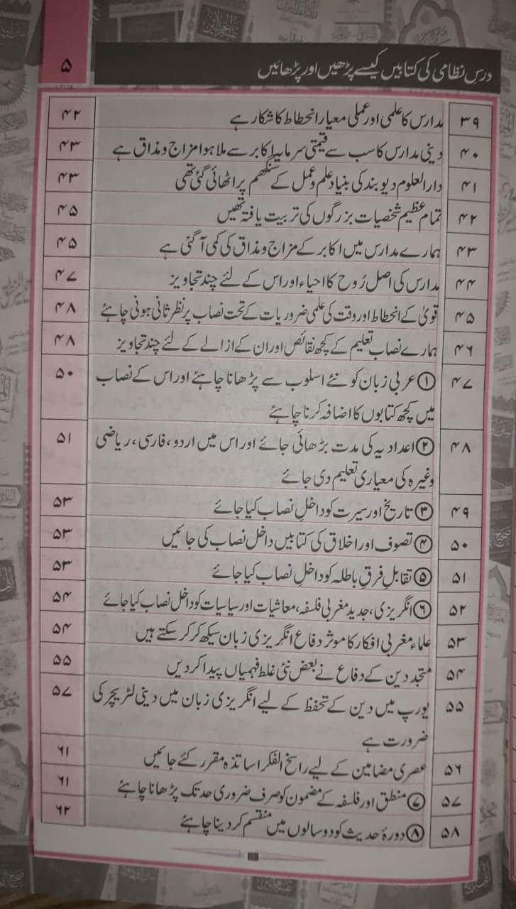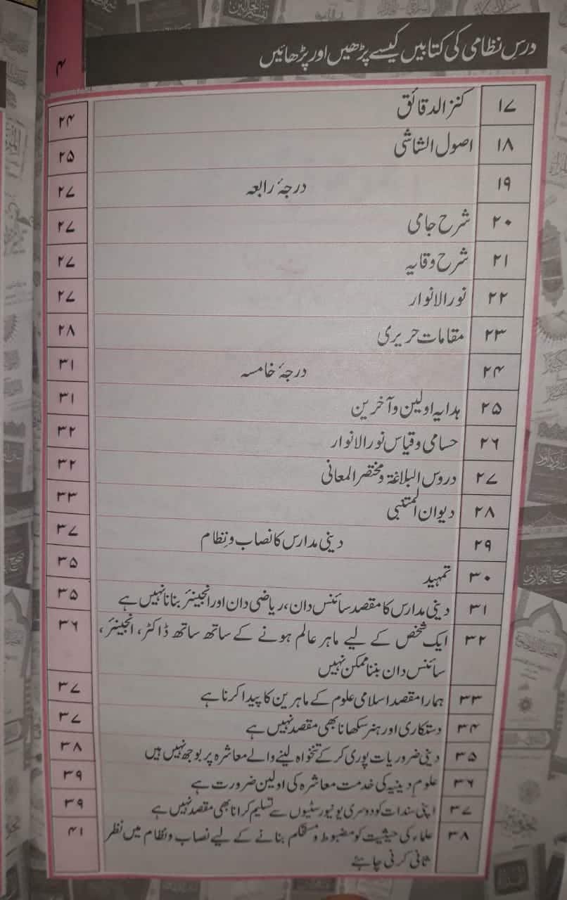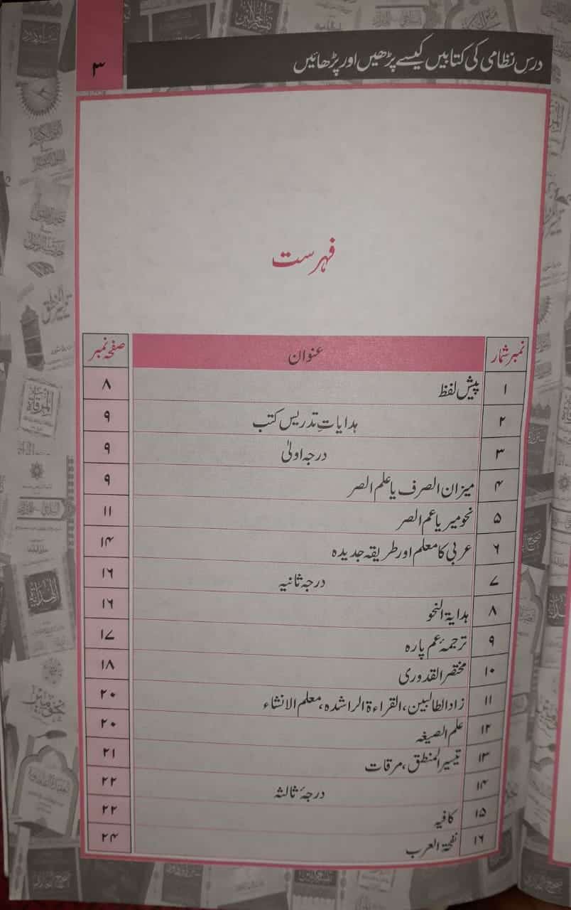 درسِ نظامی کی ہر کتاب کو پڑھنے اور پڑھانے کے طریقے شامل ہیں۔