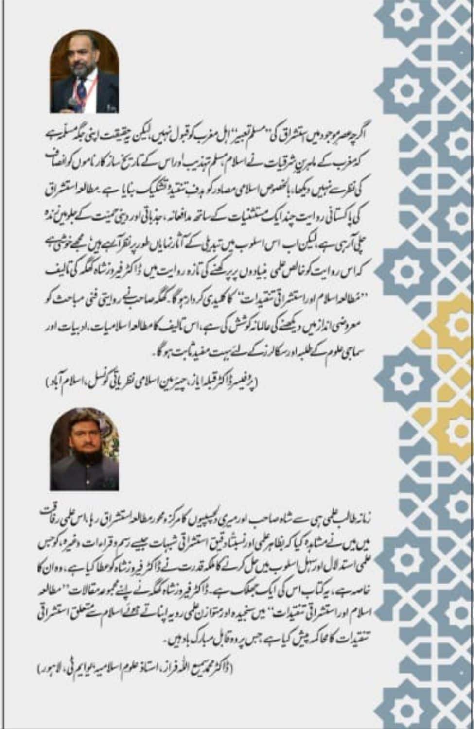 روفیسر ڈاکٹر قبلہ ایاز ،چیئر مین اسلامی نظریاتی کونسل اسلام آباد کا کتاب کے بارے میں تبصرہ: