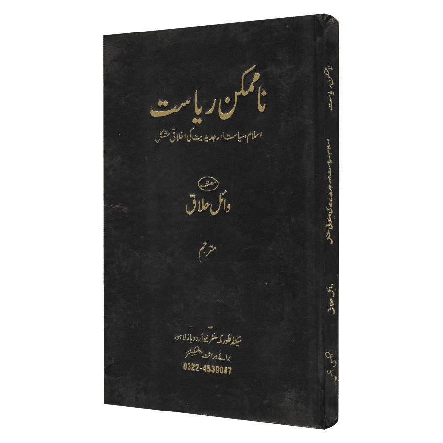 یہ کتاب وائل حلاق کی انگریزی کتاب کاترجمہ ہے جس میں اس نے یہ بتا یا ہے کہ آج کی جدید ریاست کی کسی بھی معیاری تعریف کی روشنی میں “اسلامی ریاست ناممکن بھی ہے اور ناقص بھی ہے۔